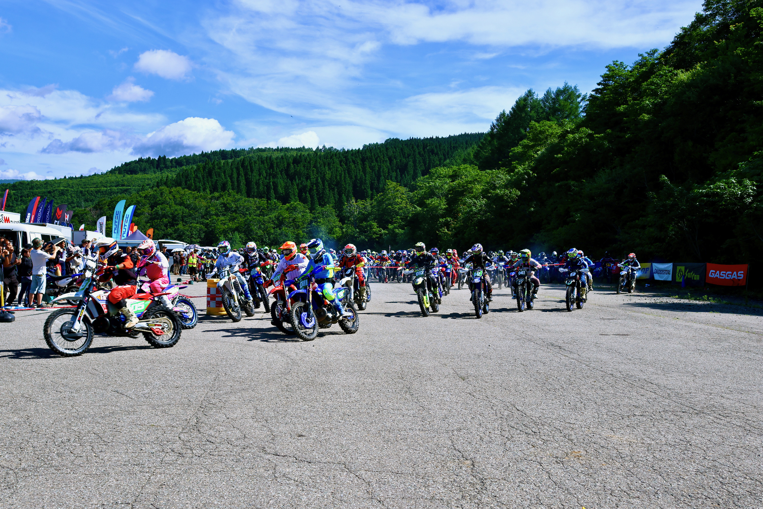 - 今回のコースレイアウトも萩原ディレクターによる絶妙な匙加減が表れていた。難所を極力廃したFUN-GPは、まさにヴァージンゲレンデを全開で疾走する楽しみに満ちていた。その証拠にFUN-GP終了後のライダーのコメントは一様に「アクセルを思い切り開けられて、楽しかった!」というものだった。程よいガレ、キャンバー、コース長が設定されたが、連日の猛暑を考慮してラストラップ表示なし、通常よりも短いレース時間ではあったが、それでも満足度はかなり高かったと言えるだろう。