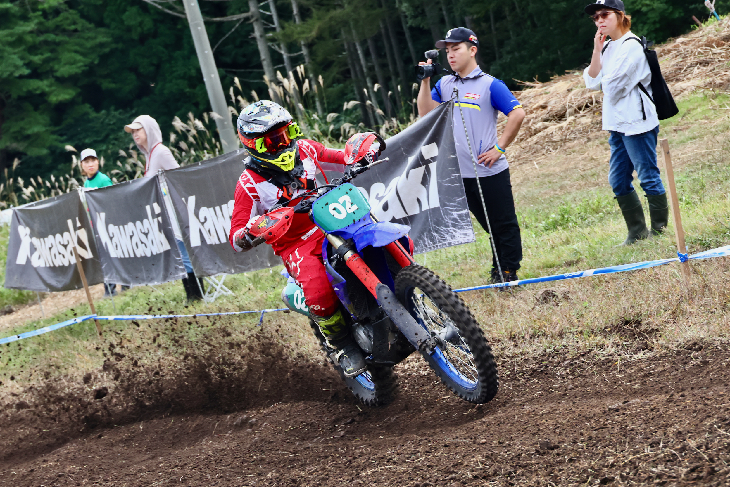 - 今年2回目の開催となったビッグバード高井富士。地理的には前戦の木島平に隣接するといっても良いシチュエーションだが、こちらはなんといってもウッズセクションの充実ぶりが際立っているのが特徴だ。午後のCOMP-GPは大雨による超マディレースとなったが、午前中に開催されたFUN-GPはドライコンディション。秋の涼しい気候とベスコンの路面に、FUN-GP参加ライダーはゴール後に一様に「楽しかった!」と満足げだ!