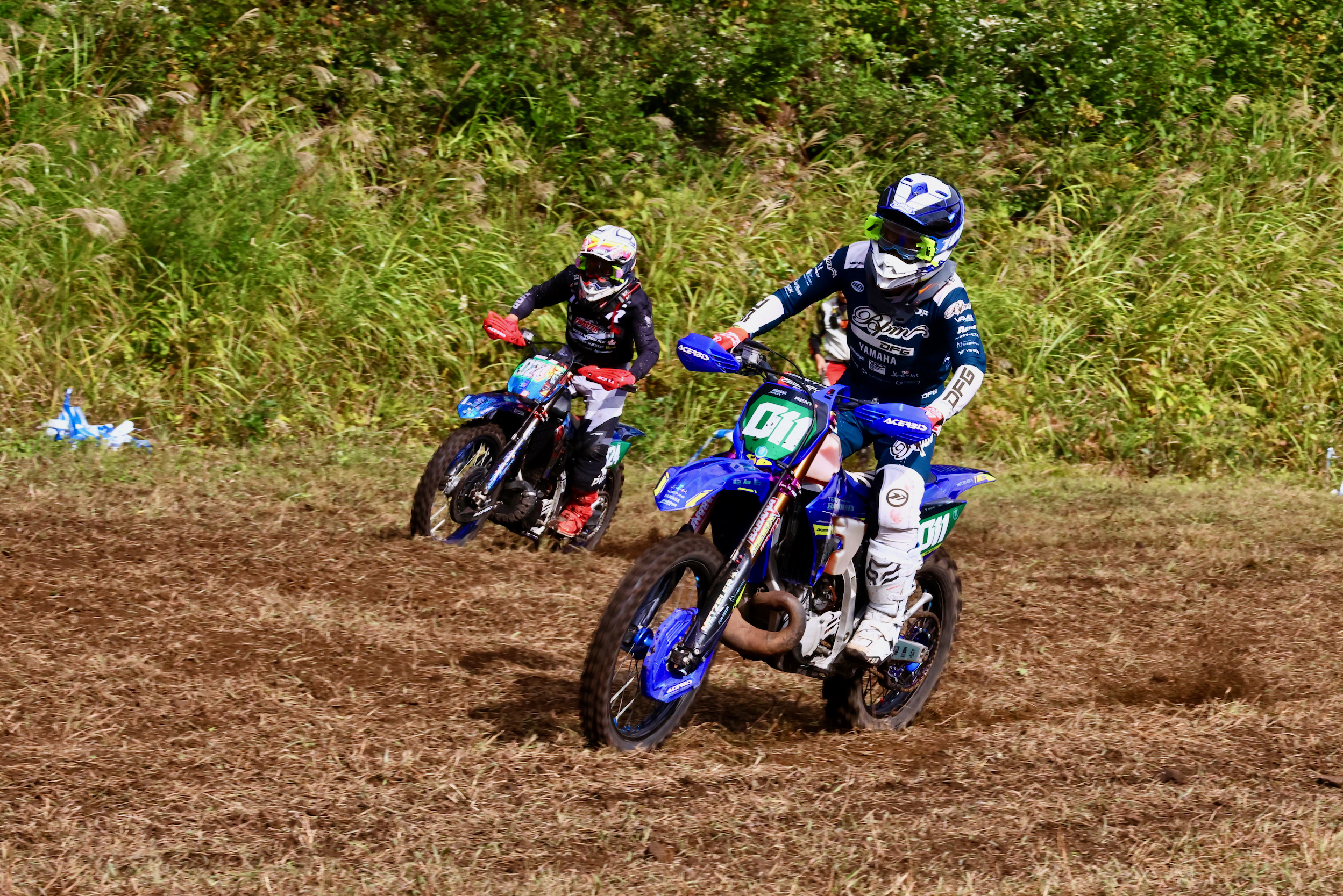 - 激闘はFUN-Bクラスでも発生していた。優勝の 武井優大と激しくバトルをしたのは 島田優。二人とも表彰台の常連となるトップライダーだが、わずかに武井がリードしてトップチェッカー。特にラスト1周は武井も無呼吸で踏ん張るほどの激闘だったようで、心臓をバクバク言わせながらの興奮のフィニッシュだった。悔しさを見せた島田だったが「自分のヘルカメを見つけて拾ってくれたのが武井選手でした(苦笑)」と、レースを振り返っていた。