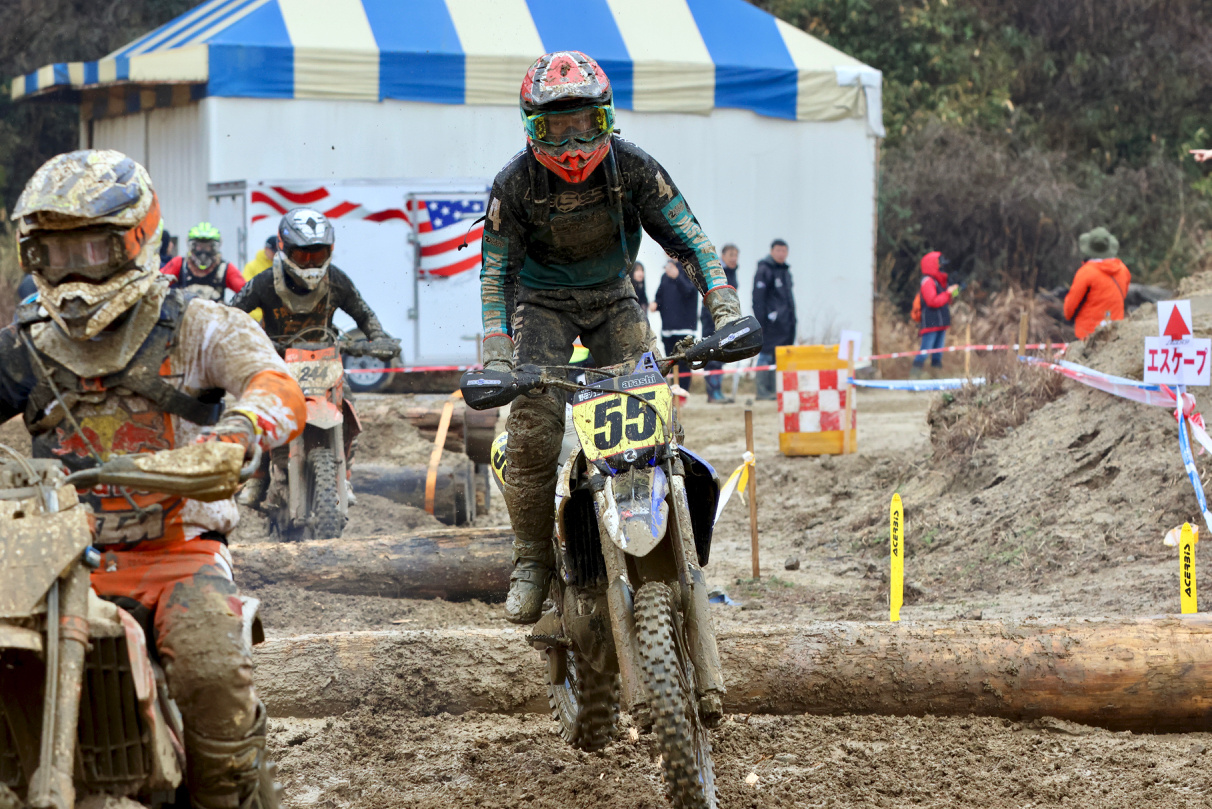 - 総合2位に入ったのはFUN-Bクラス#55 山田嵐士(野田ジュニアRC)選手。普段はクロスパーク勝沼をホームとしてモトクロス活動をしているライダー。昨年は関東と中部のNBチャンピオンを獲得し、本戦もモトクロスシーズン前のスポット参戦だった。