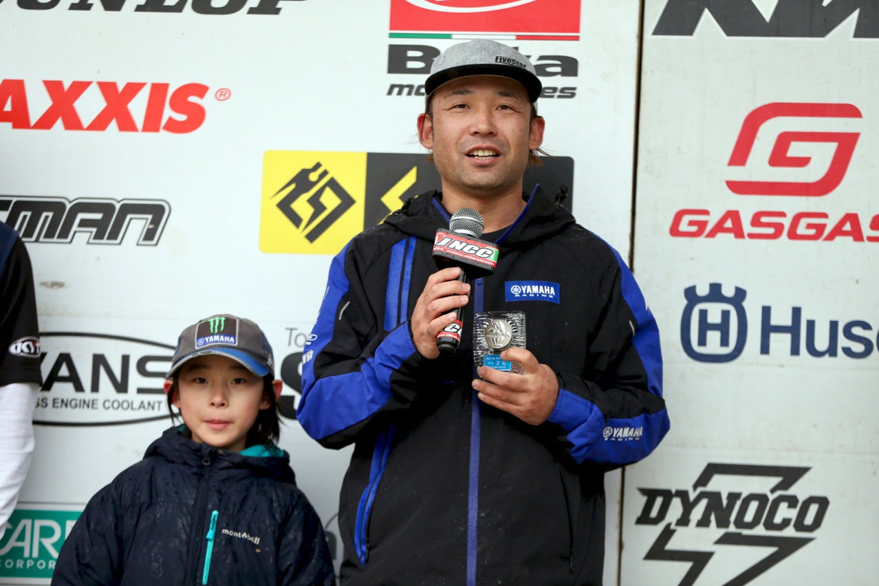 - 「このコース、下見では不利かなと思ったのですが、TC85の軽さのおかげで、みんなが押さなくてはいけないところをマシンに乗ったまま押すこともできたし、エンジンもよく粘るので最後までしっかり走ってくれました。体力ロスもなくて、逆に有利だったかもしれないですね」と話してくれた。