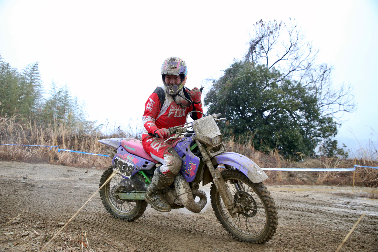 - KDX125SRで FUN-Dクラスを制した 柿本忠昭 選手(柿本輪業レース部門)。レース中も楽しそうな姿が印象的!