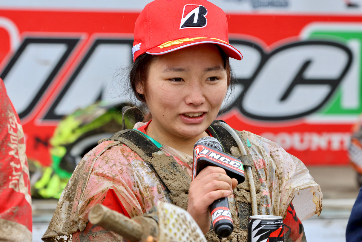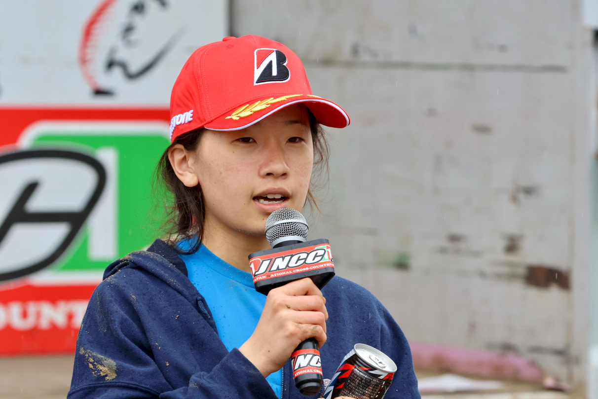 - 「勝沼はよく滑るコースなので雨は得意です。阪下は滑らず掘っていく感じなので、ハンドルを取られないように注意しました。今月初めにおじいちゃんが亡くなり、お祖父ちゃんのためにも楽しく走りました。次回参加したときは総合優勝したいです」