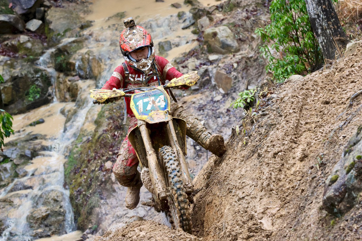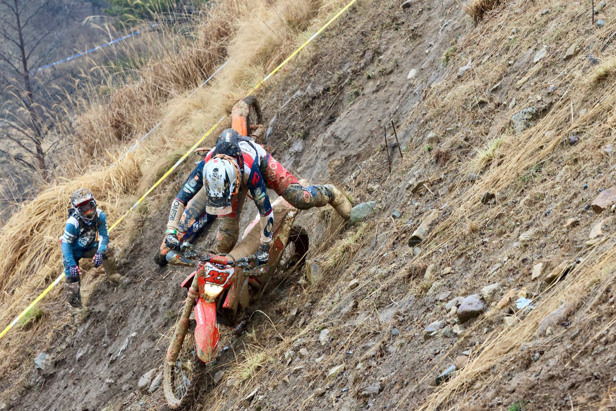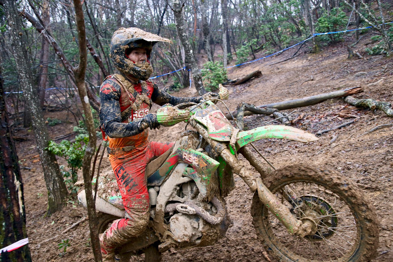 - Stefan選手は開幕戦ではKOVE450ラリーで参戦し残念ながらリタイアを喫したが、なんとリベンジを果たすべく 急遽このレースにGASGAS EC350Fでの参戦を表明。その行動力の凄さはもちろん驚嘆すべきものだが、なんといってもその卓越したスキルが素晴らしい。エンデューロ、クロスカントリー、近年ではモトクロスでも抜群の速さを見せるライダーを輩出しているオーストラリアのトップライダーであり、この難コンディションの広島でも素晴らしいスキルを随所でみせてくれた。