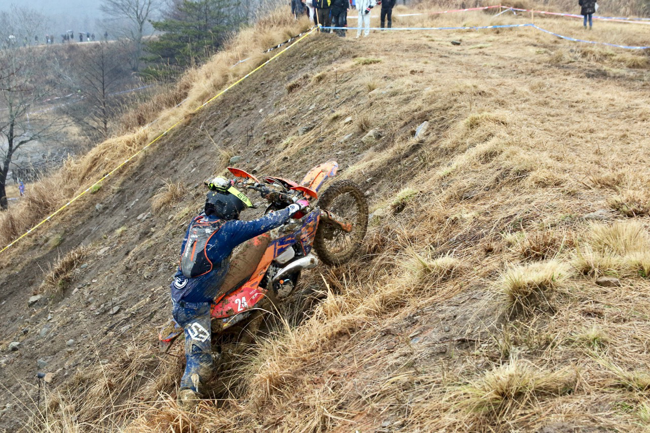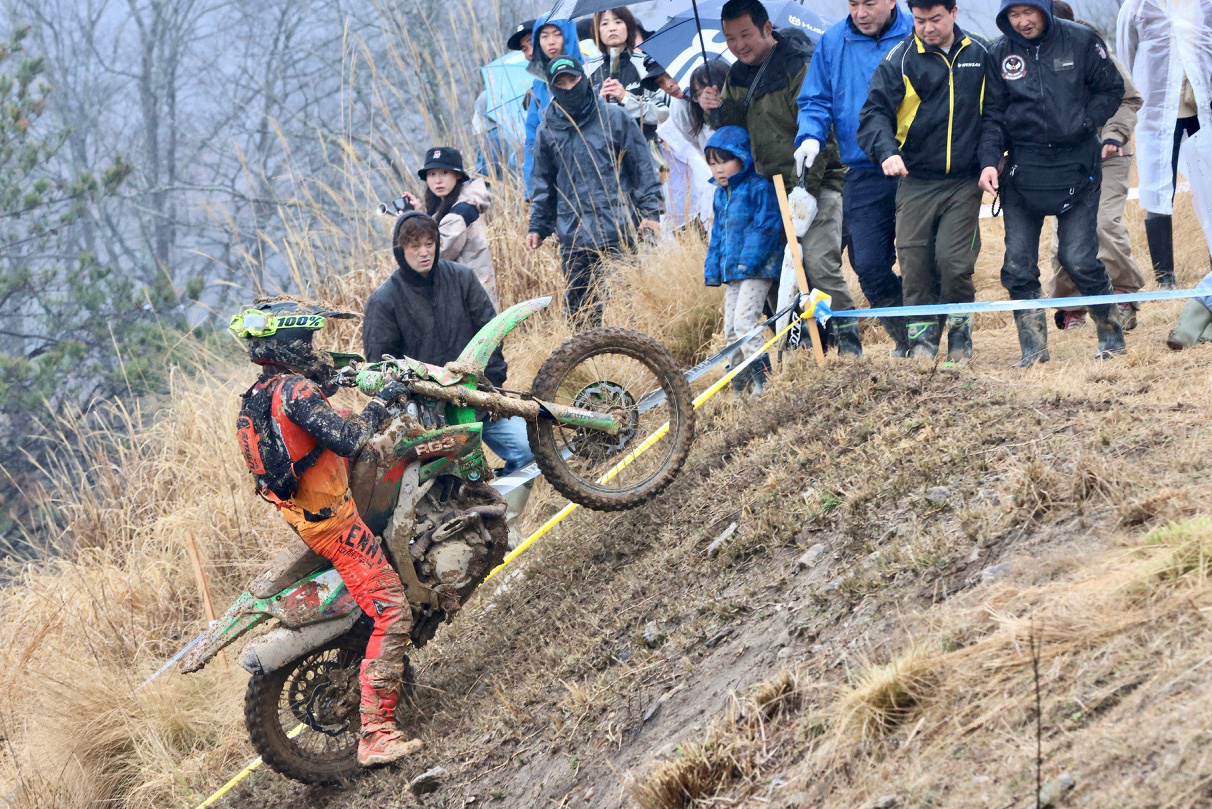 - ラストラップを除き、ラスベガスを登頂成功させた 矢野選手。ほぼモトクロスマシンのKX450X(ハードエンデューロでは GASGAS 2ストマシン)だが、経験値とスキルで悪コンディションを味方につけた。