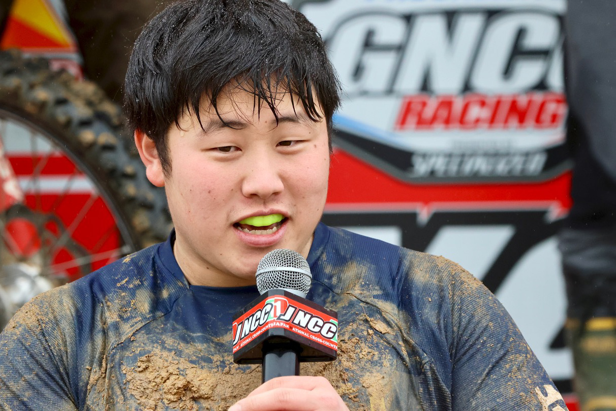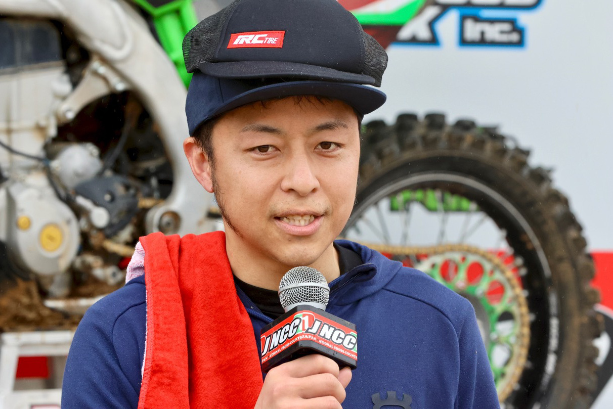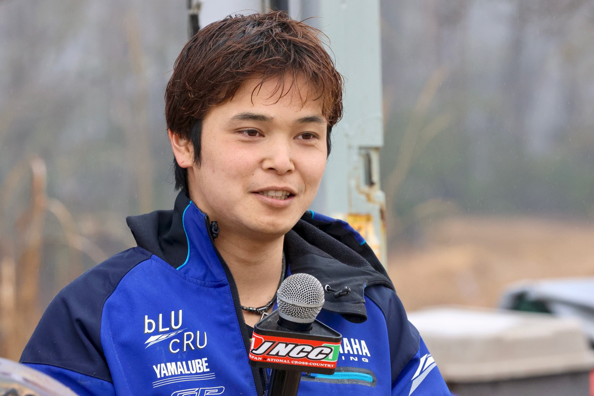 - モトクロス現役 IAライダーの町田選手は2回めの JNCC参戦。「トレーニングを兼ねて参戦することは馬場さんだけでなくジェイさん(ジェイ・ウィルソン選手:2023年全日本モトクロスIA1チャンピオンで昨年のチームメイト)にも後推しされたそうだ。終盤までトップをキープする快走をみせた。