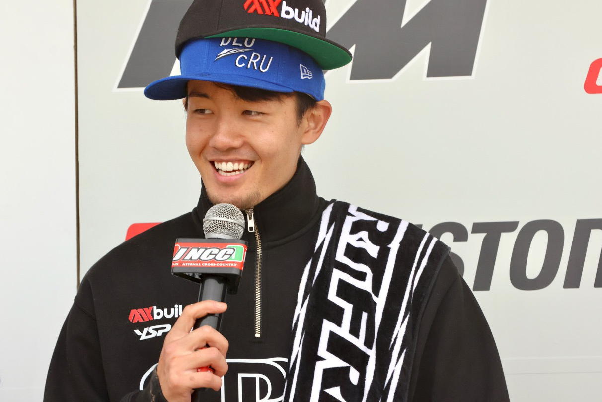 - さて、スタートは今季全日本モトクロスチームも牽引する 馬場大貴 選手(YSP浜松 with BABANASHOX)が抜群の反応を見せてホールショット。長丁場のクロスカントリーゆえに、スタートに関してモトクロスほどの重要性はないものの、調子の良さをここで表現していたといってもよいだろう。最終的には総合6位で終える結果となった。「課題はビビってしまう自分でした。もっとマディを練習しなければ」と振り返った。