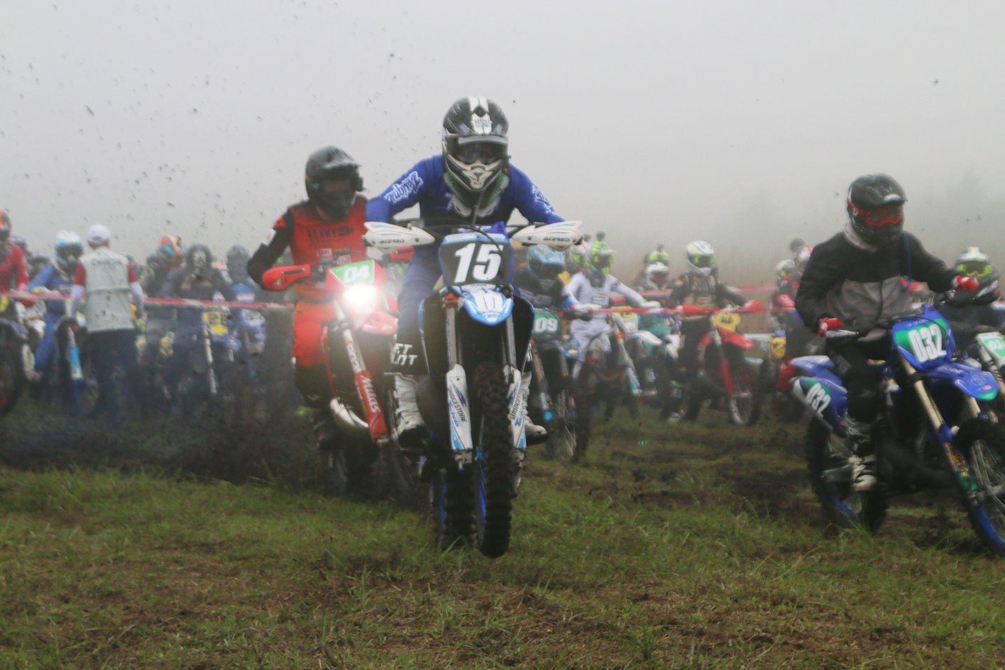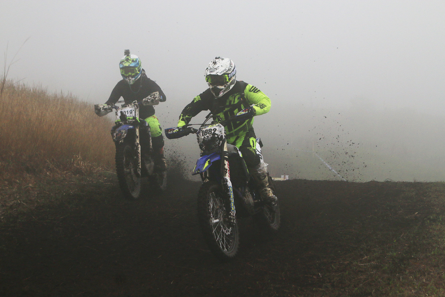 - 濃霧の中で好スタートを切ったのは 岩井良宏 選手(331 Racing Team)。レース序盤から厳しいコースコンディションの中を快走し、2位を走っていた 嶋岡虎汰朗 選手(ハスクバーナショップヒラタ自動車)に30秒近く差をつけてトップを走り続ける。だが状況が変わったのは最終ラップの後半、嶋岡選手の猛追を受け、激しいバトルの結果両者ともにコースアウトしてしまったのだ。そしてレースに復帰しようとコースに戻る際に転倒してしまった2人が接触し、嶋岡選手が左肩を脱臼するアクシデント。しかし 嶋岡選手は痛みに耐えながらそのままレースを続行し、見事に優勝を手にした。
