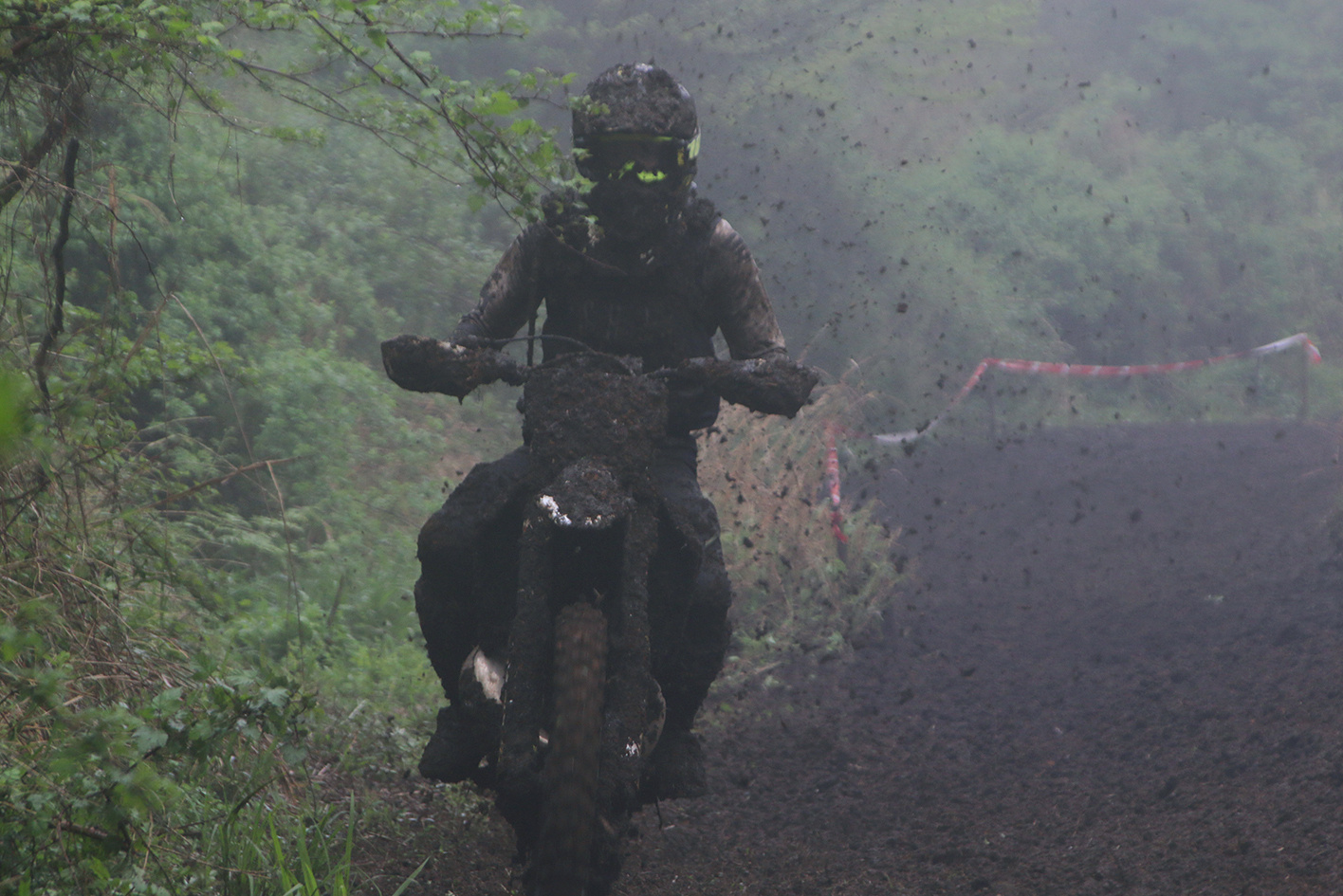 - あまりにも酷い路面の為マシンカラーやウェアの色すら判別できないほどだ。