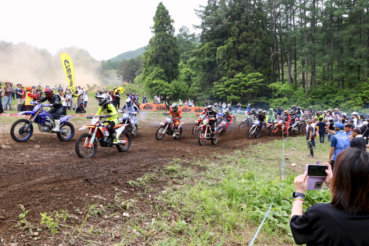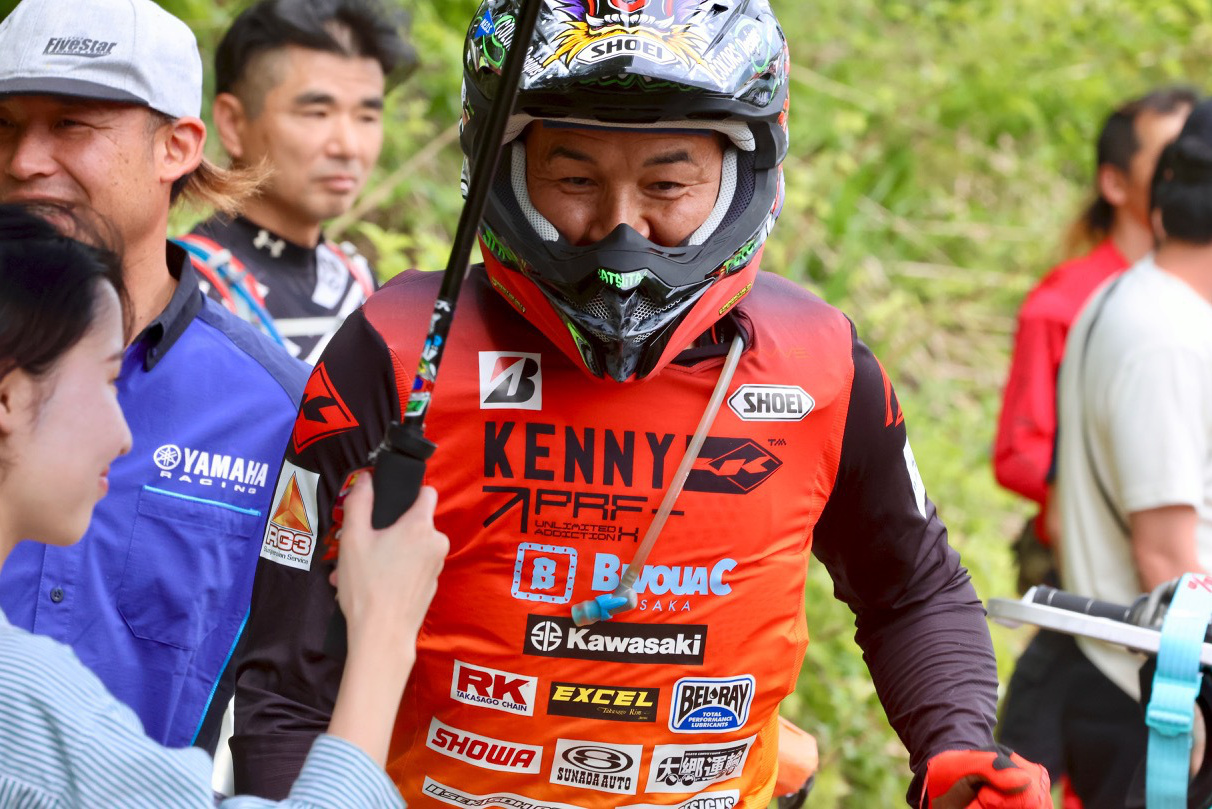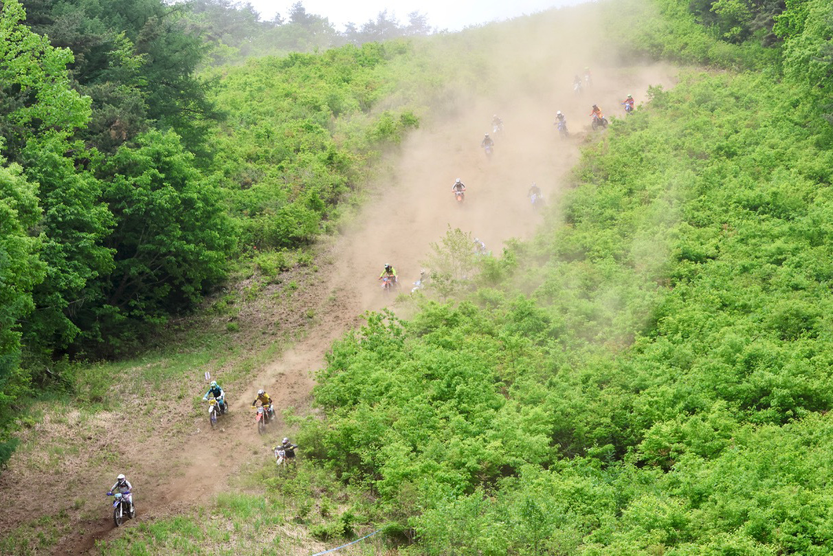 - 本戦のもう一つの目玉が COMP-Aクラス の 勝山選手 の走り。ハードエンデューロ界の実力者がクラス優勝、総合10位でゴールしたのだった。