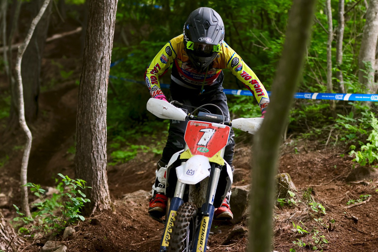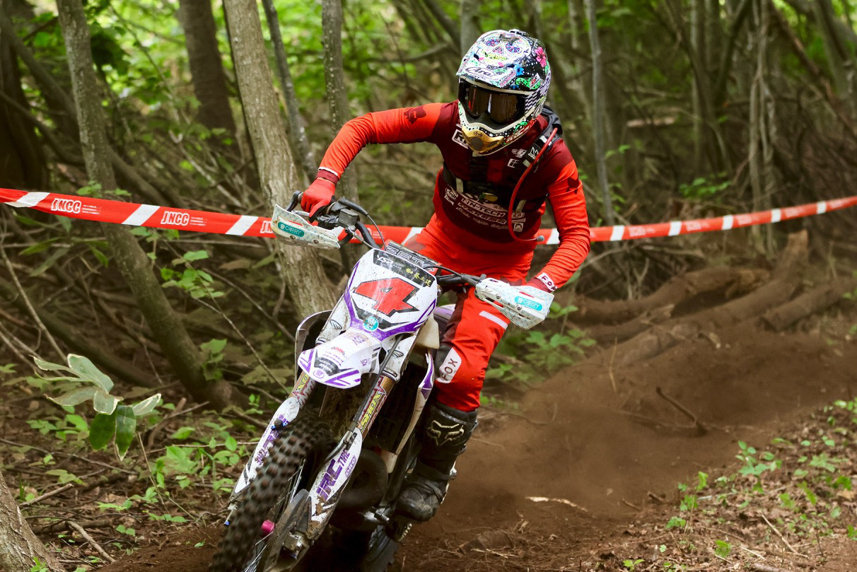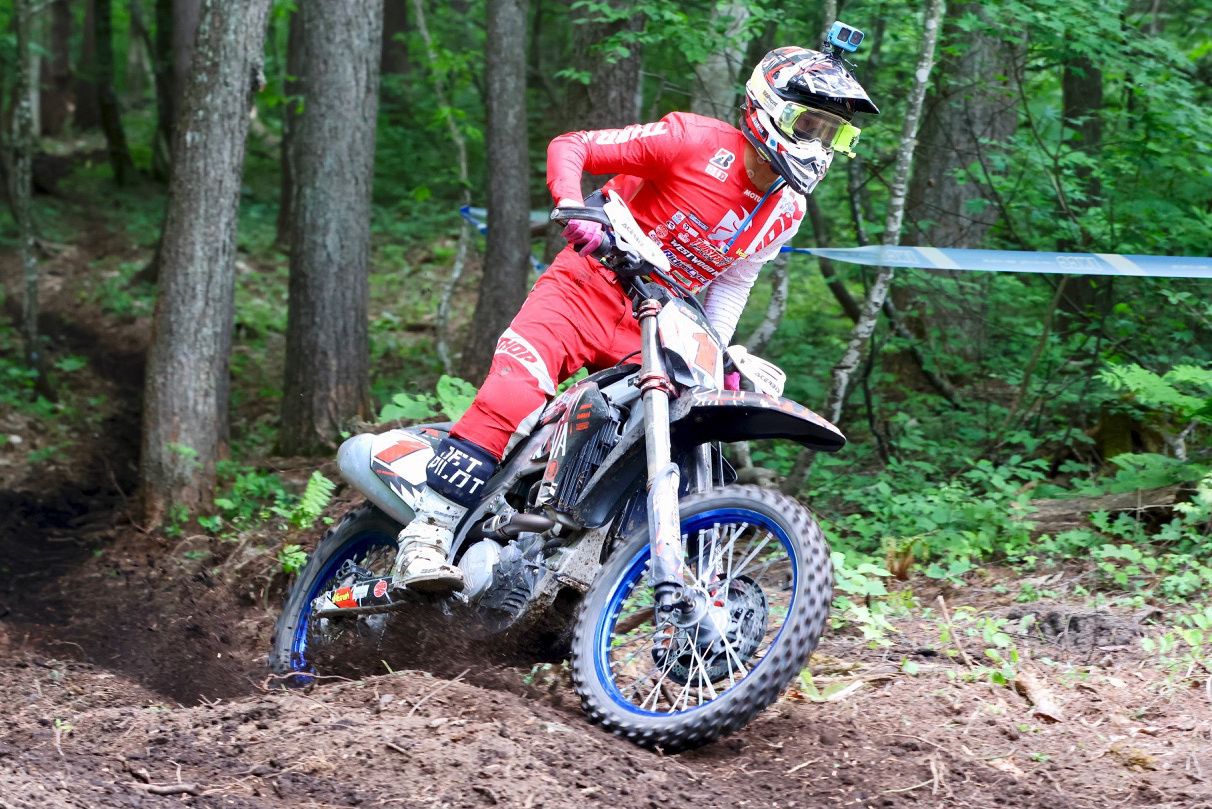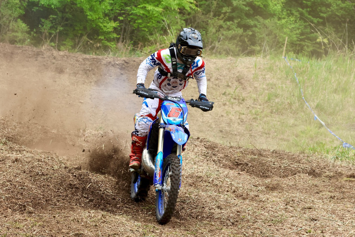 - 本戦のもう一つの目玉が COMP-Aクラス の 勝山選手 の走り。ハードエンデューロ界の実力者がクラス優勝、総合10位でゴールしたのだった。