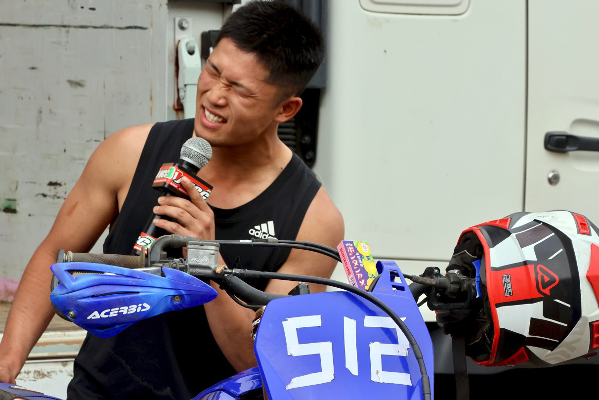 - 「今回はドライだしトップライダーが集まっているので、ここで勝ちたかったですね。早めにスパートをかければ勝負がつくと思いました」と、その後は無転倒で走りきった。ちなみに 渡辺選手 の本戦のマシンはYZ250F。YZ450FXは前戦での破損から部品が間に合わず テクニクス や 馬庭メカらの協力を得て急遽このマシンで作り込みをしたが、相当乗りやすかったようだ。