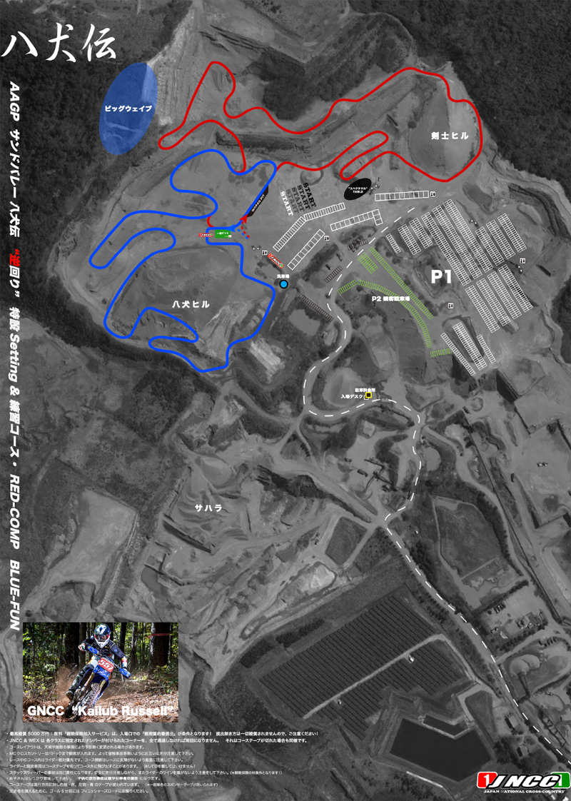 ・ サンドバレー 八犬伝 では 土日を通し 1000円(普通車)の駐車料金がかかりますが、千葉石産株式会社のご好意によりコースエリアからやや離れた「観客駐車場」利用は無料になり(コース図外に位置します)、会場まで無料送迎ワゴンが往復します。