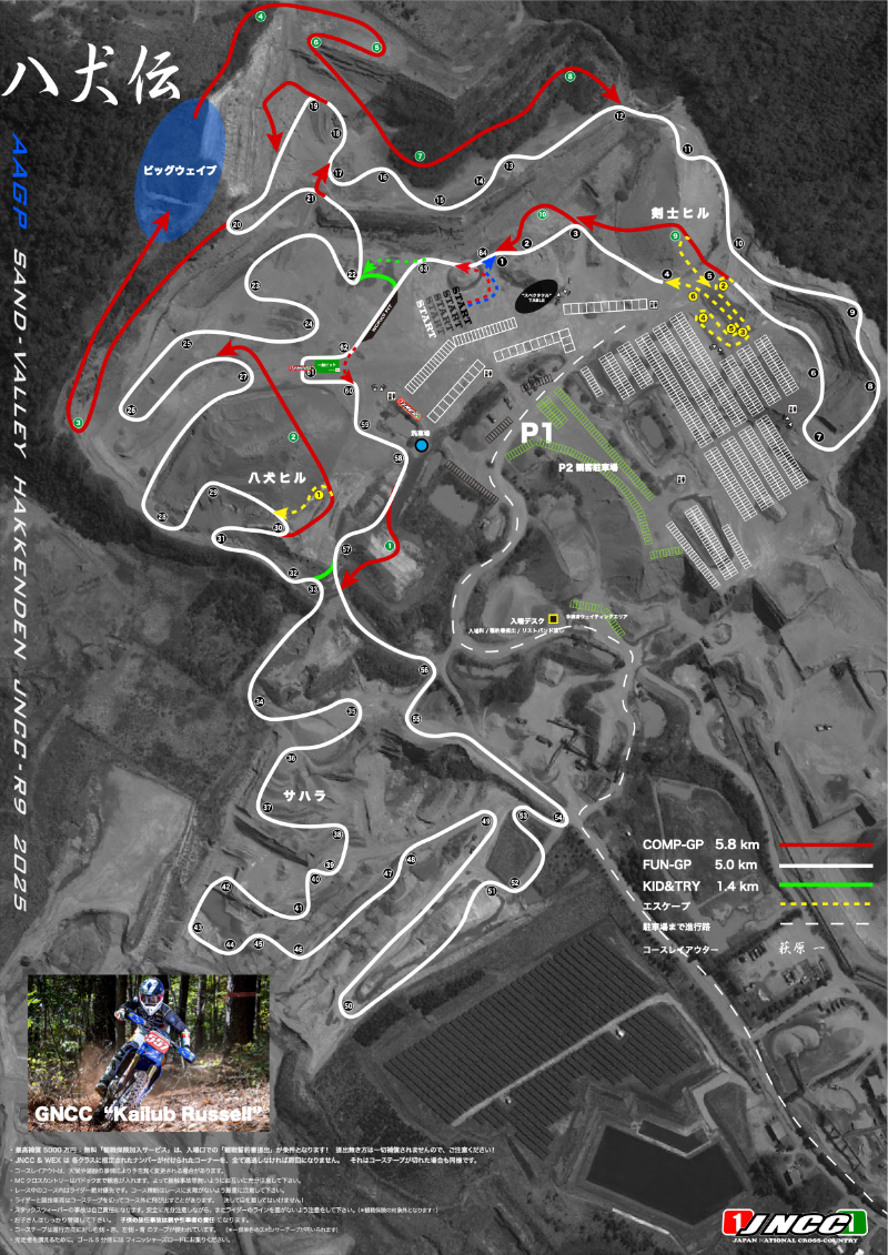 よって JNCCの場合スタート直後の競り合いは同クラスだからレースゆえの激しさが生じるのは当然ですが(この状況下での MXとの違いはありません)バラけて各クラス混走になった際は上位クラスライダーは下位クラスライダー(または明らかに自身より遅いライダー)に対し 適切で配慮ある追抜きを心掛け なくてはなりません。( 但し過度な配慮は無用でそれではレースになりません!)