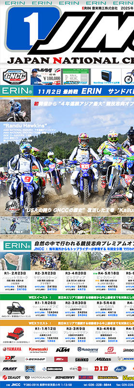 - 氏は JNCC でも GNCCでも「 日本の顔 」として正に一時代を築き、JNCCと我が国のオーフロードレースの発展に多大な貢献をした大功労者である。