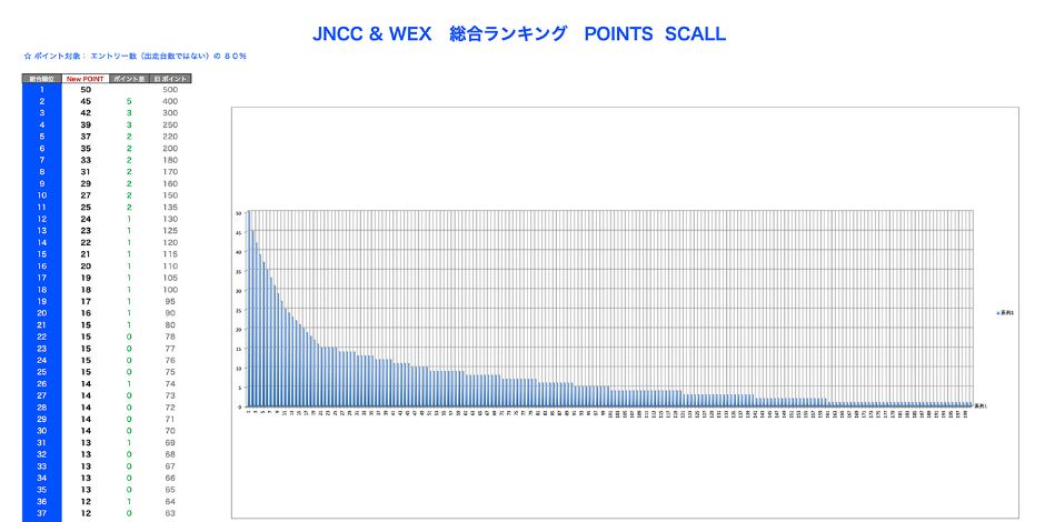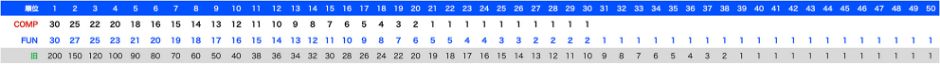 🔵 このオーバーオールランキング では COMP FUN 共に総合1位に 50ポイントが付与され、総出走数 350台を想定した上位80%のライダー( 250位 まで )に、上位ほどポイント差が顕著になる性格のポイント付与を行います。